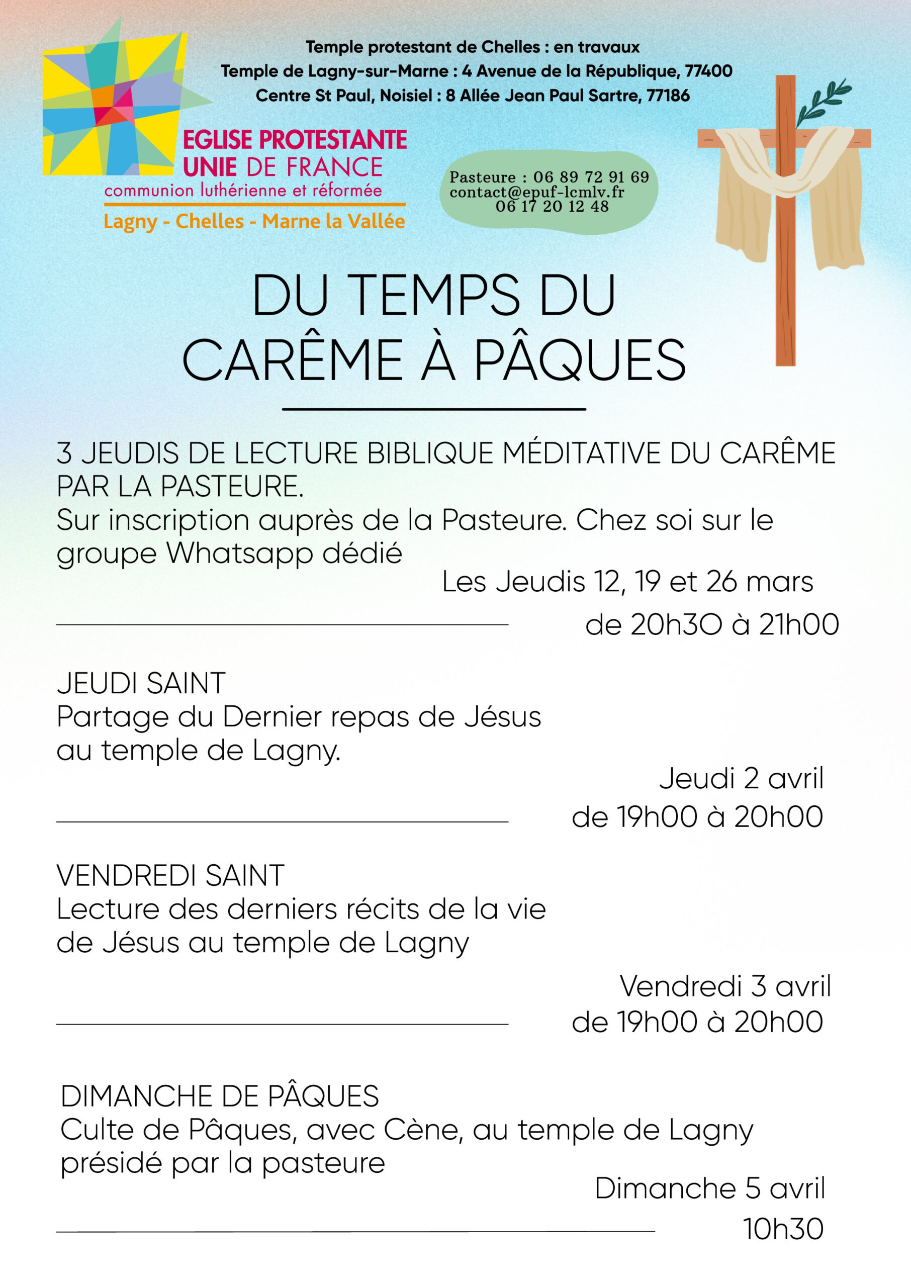 Voici les cultes du mois de Mars 2026